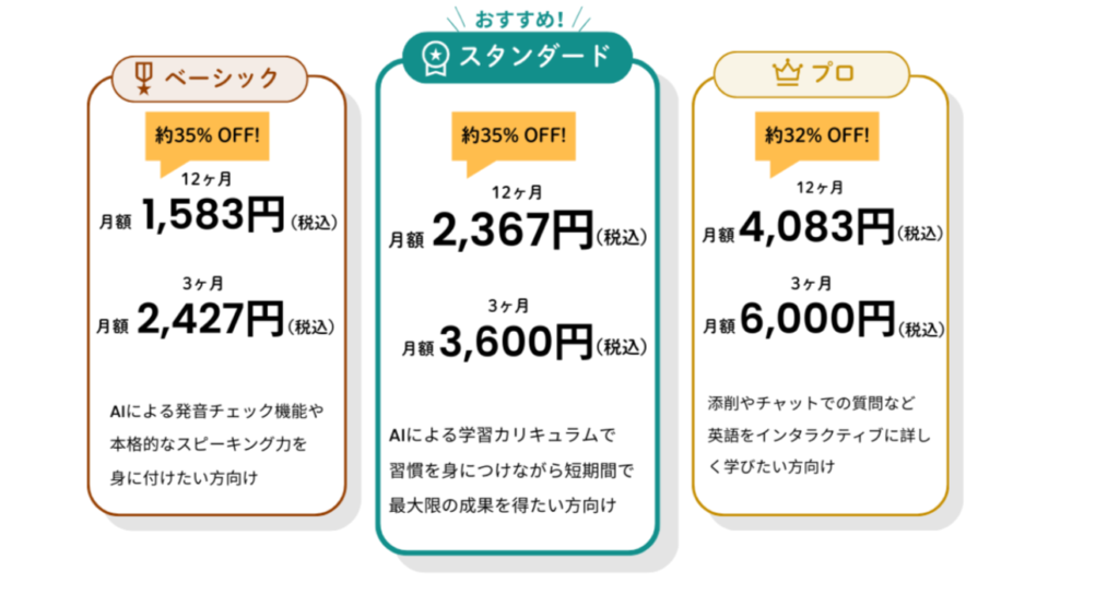 「もっと話す練習をしたい」「自分の発音をチェックしたい」と思ったら、ベーシックプランをまず検討してみると良いでしょう。